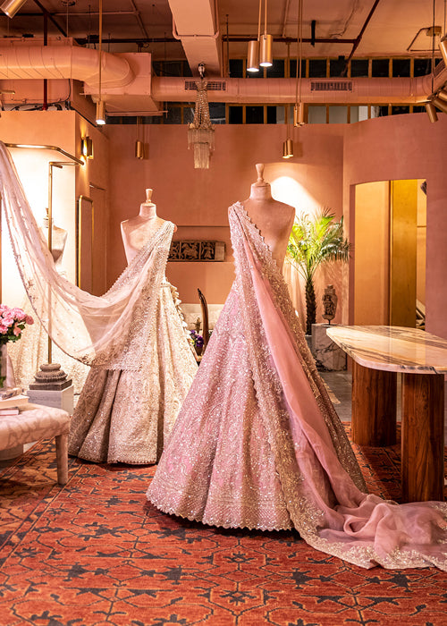 Romantic, regal, and rich in detail. Explore our world of lehengas, saris, and gowns where every thread captures femininity in its most timeless form.