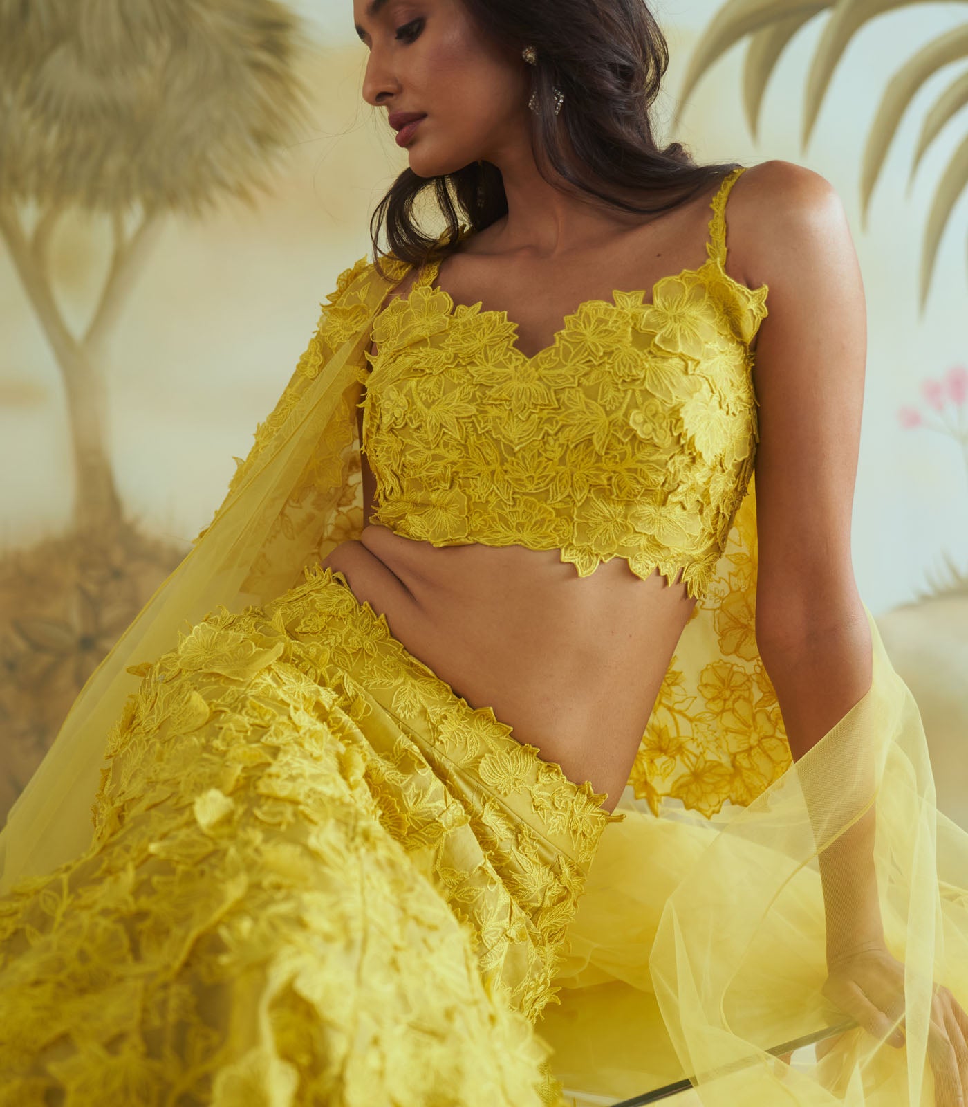 3d trail lehenga set