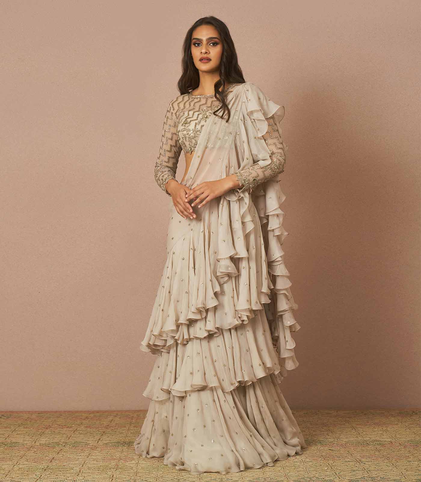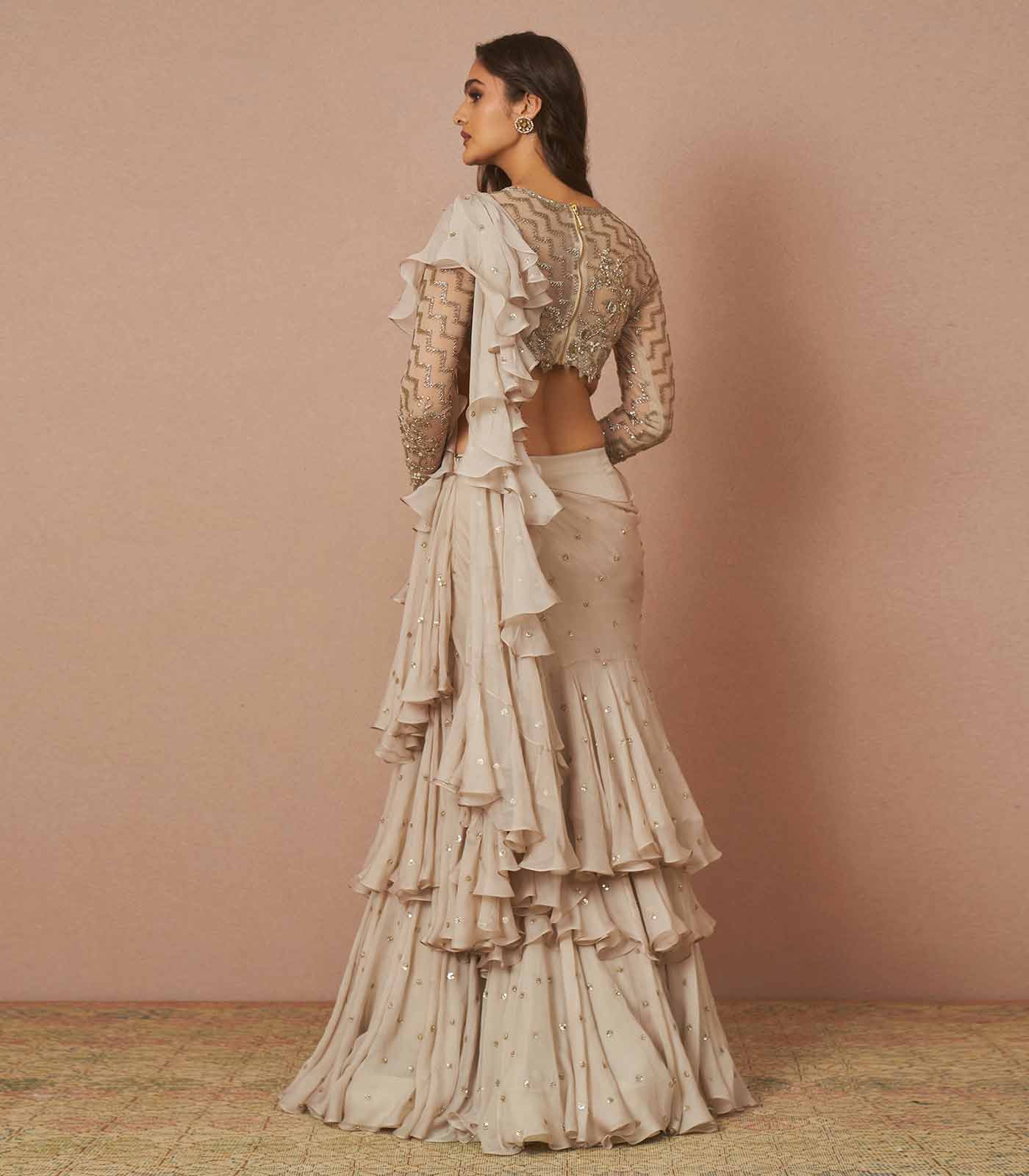 Aima is our full sleeved cutdana embroidered blouse in ivory adorned with chitta embroidery all over.