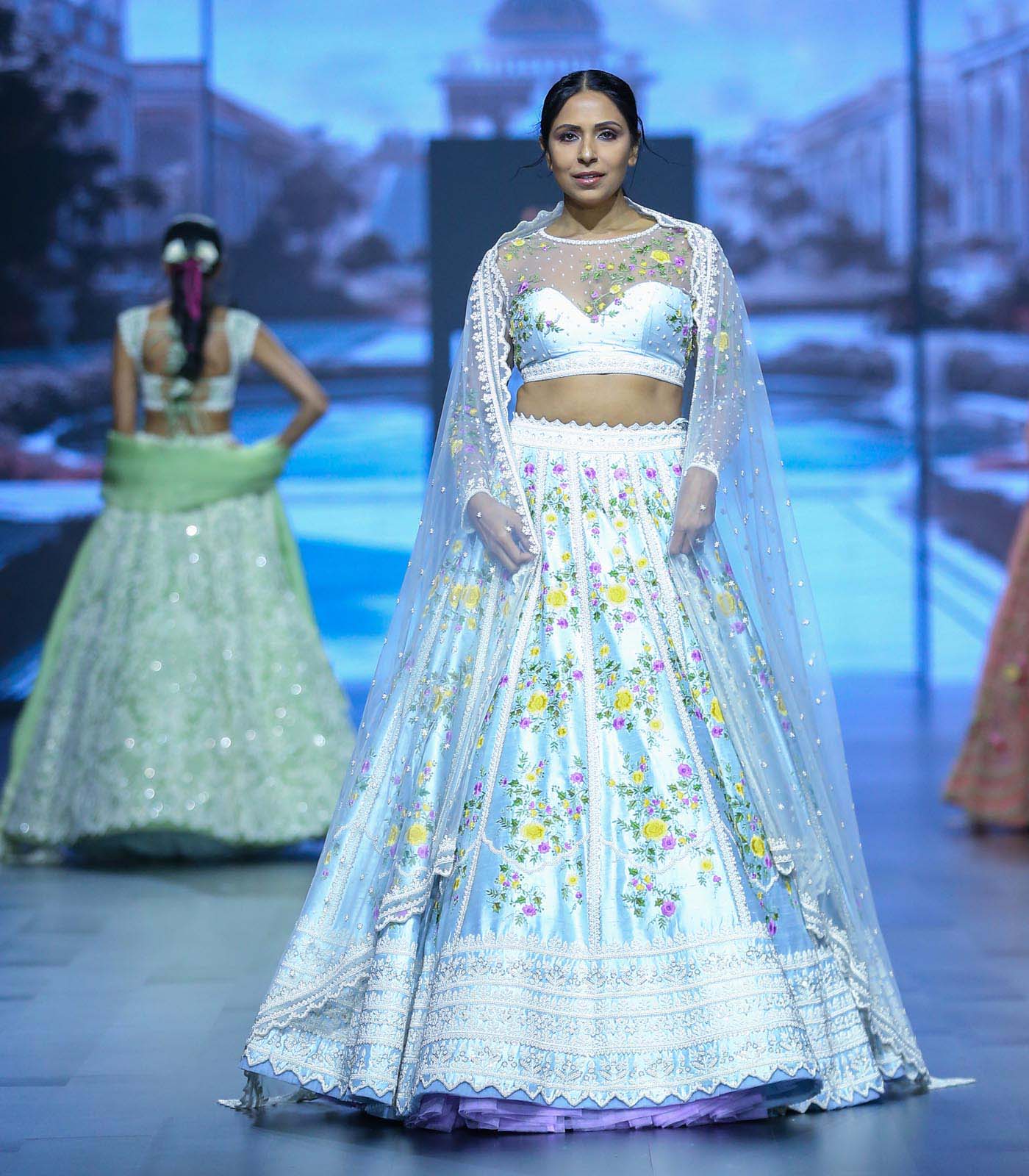 POWDER BLUE RAW SILK MULTITHREAD AND PEARL EMB "AASHNAA" LEHENGA SET