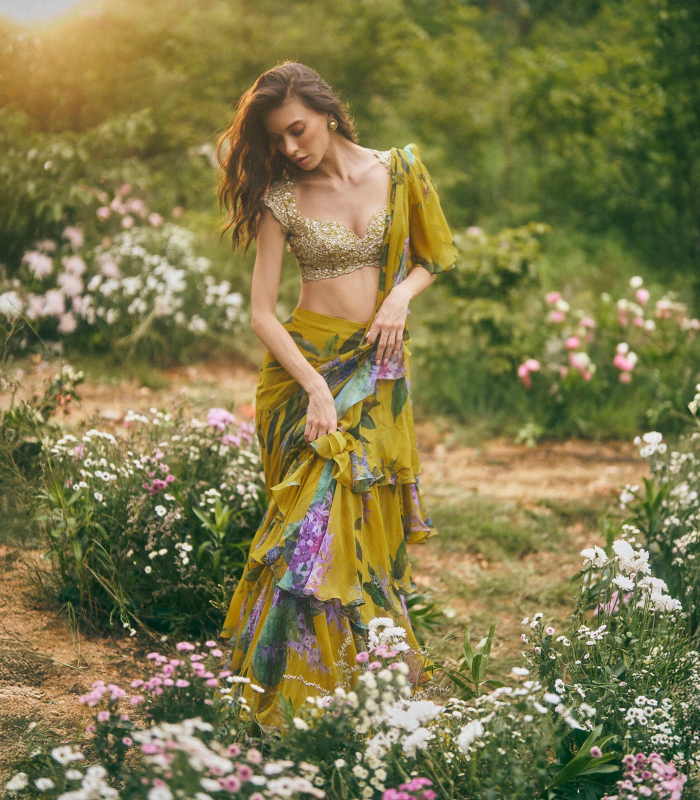 Set of pieces: 2 (Ruffle Saree + Embroidered Blouse)