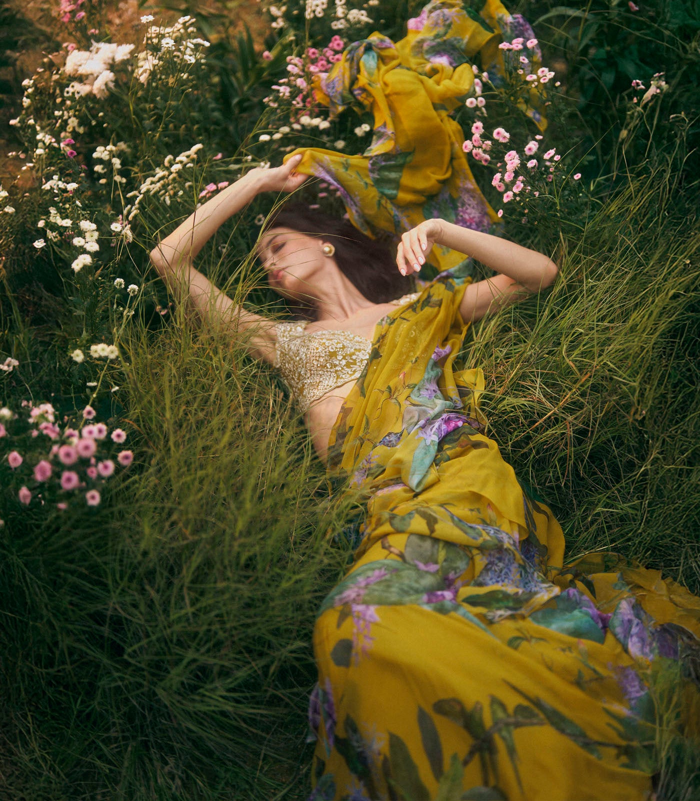 Material: Chiffon saree + Organza Blouse