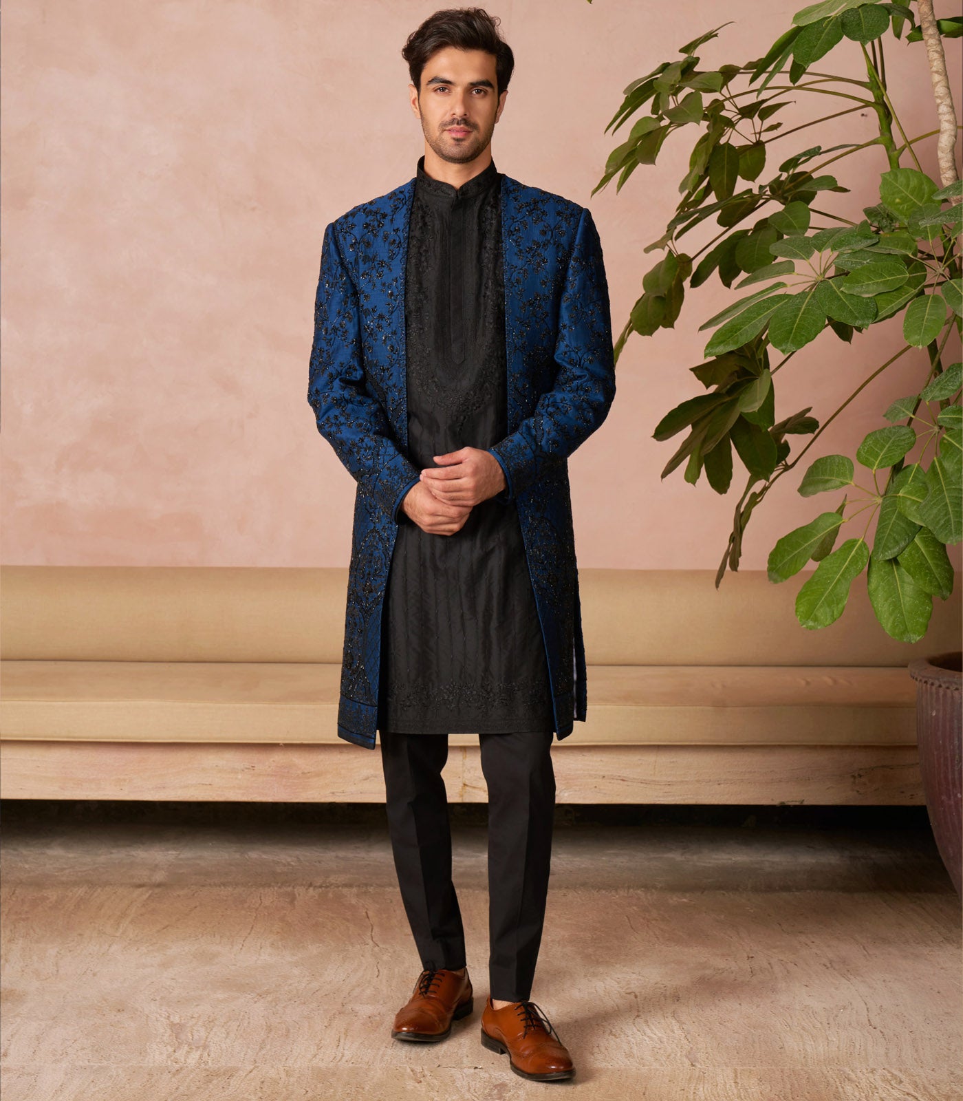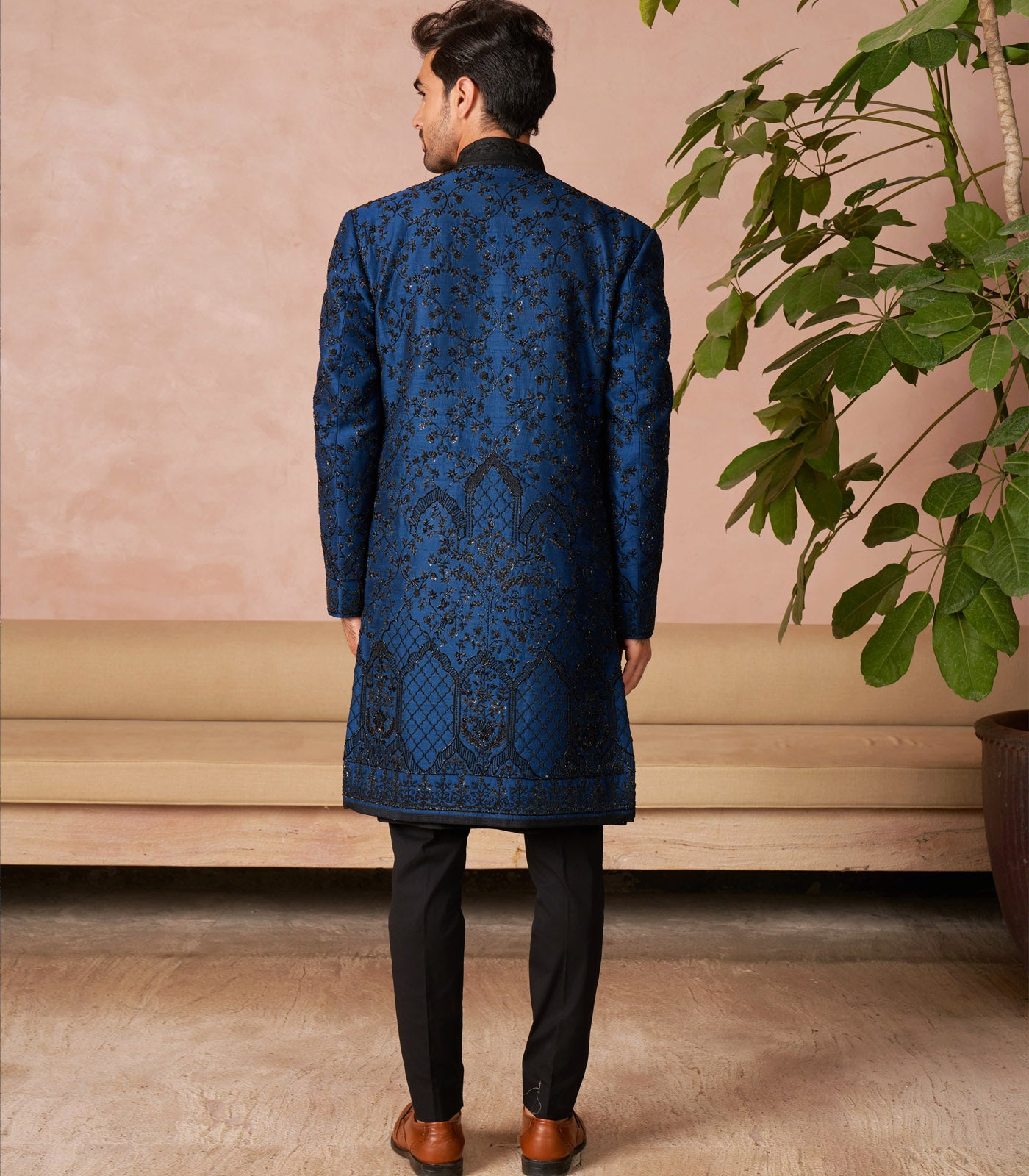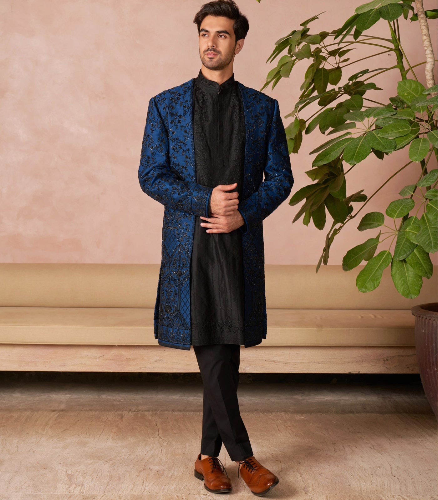 BLACK AND MIDNIGHT BLUE SHERWANI SET