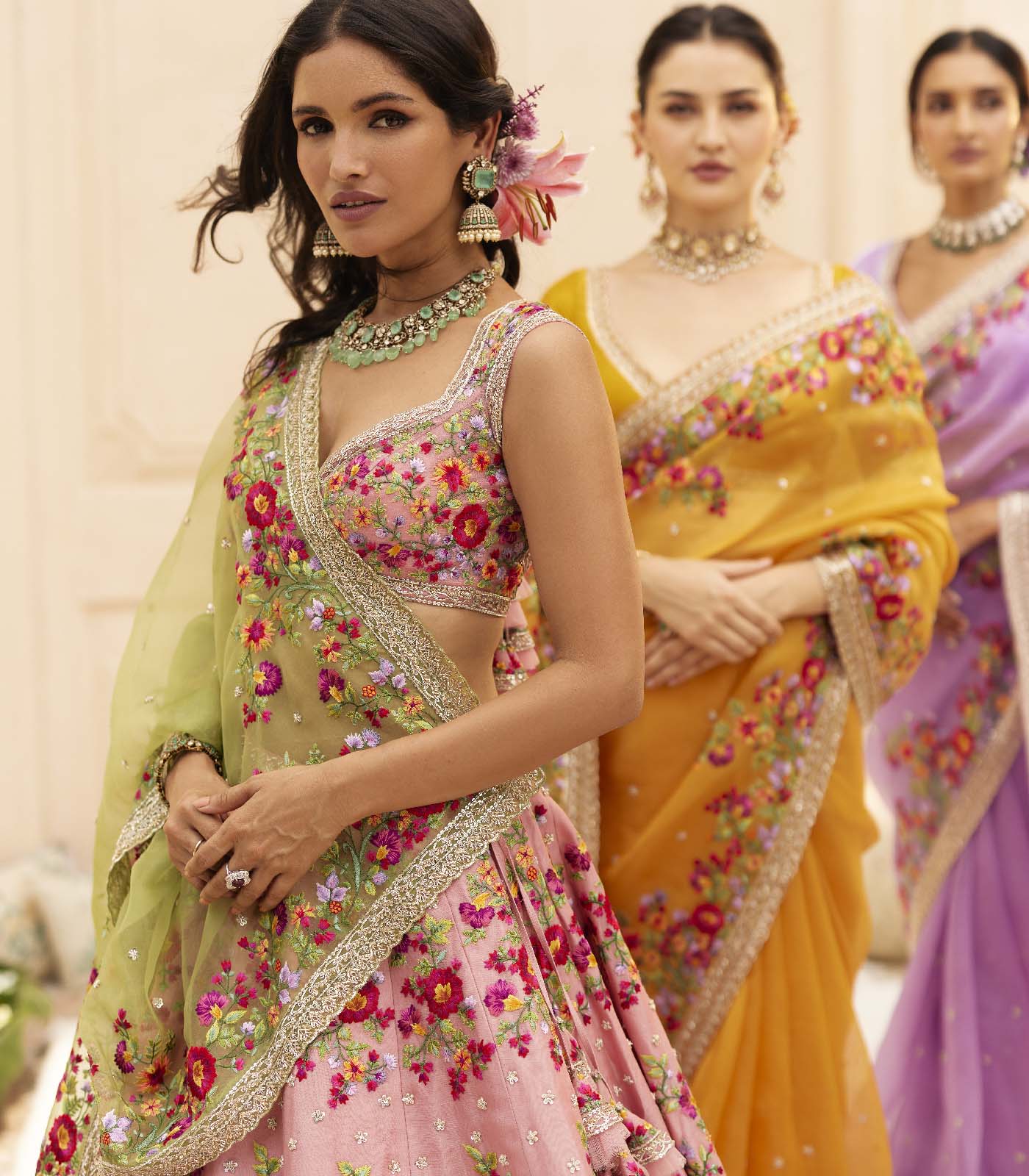 PINK ORGANZA MORNING BLOOM LEHENGA SET