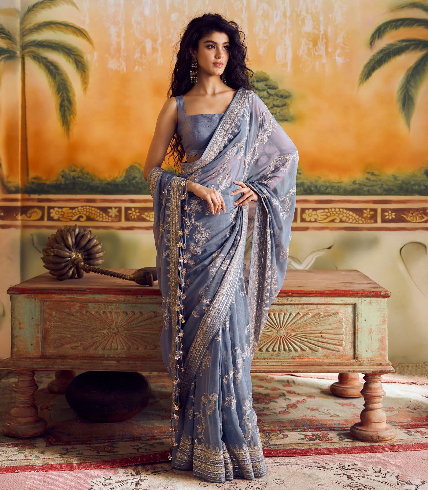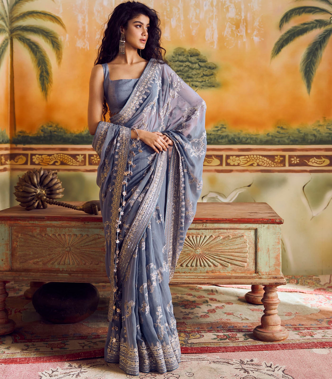 Material: Chiffon saree & Dupion silk blouse fabric only