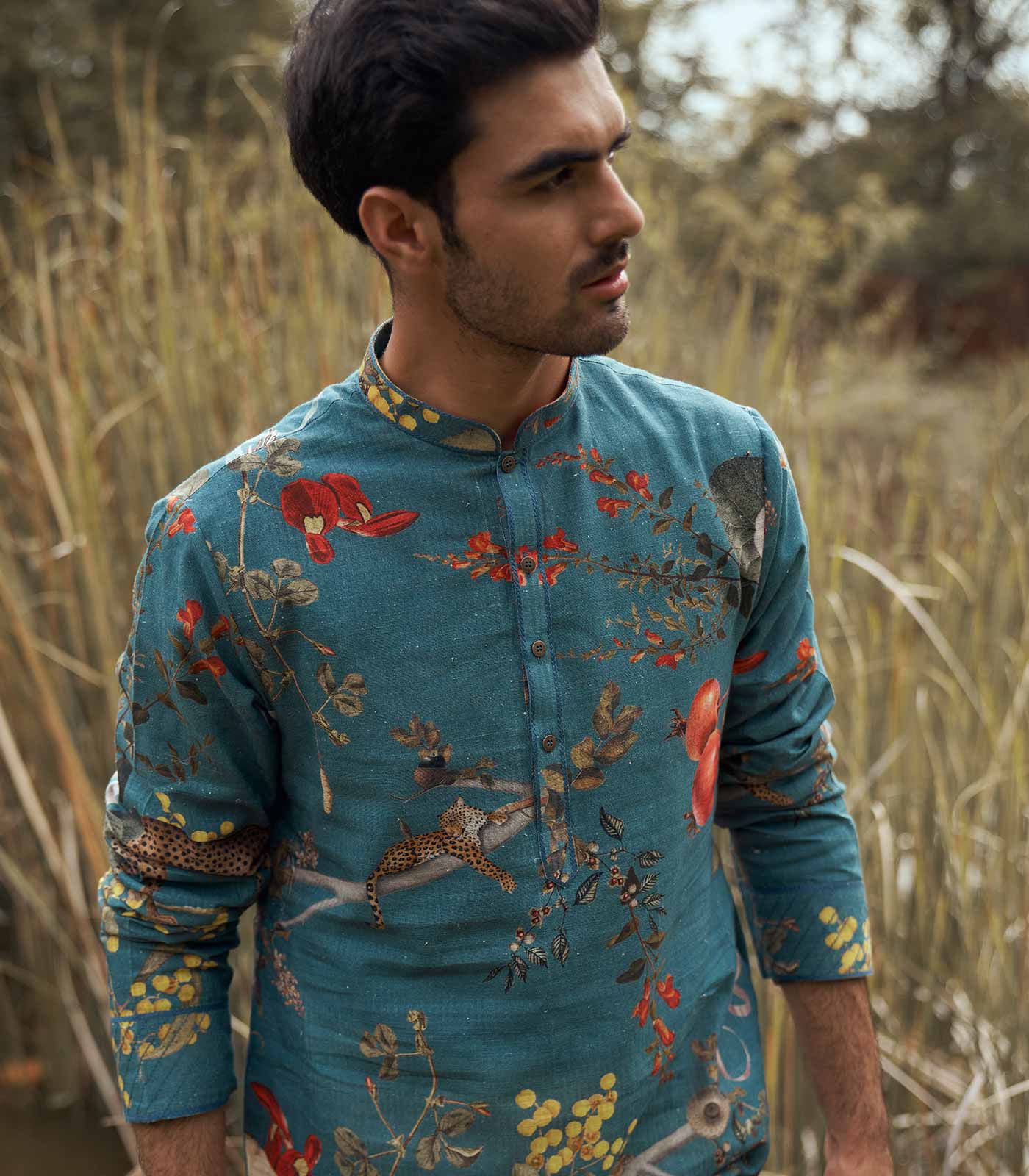 RAMA GREEN FLORAL PRINTED KURTA SET