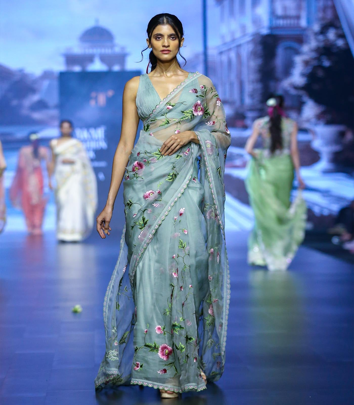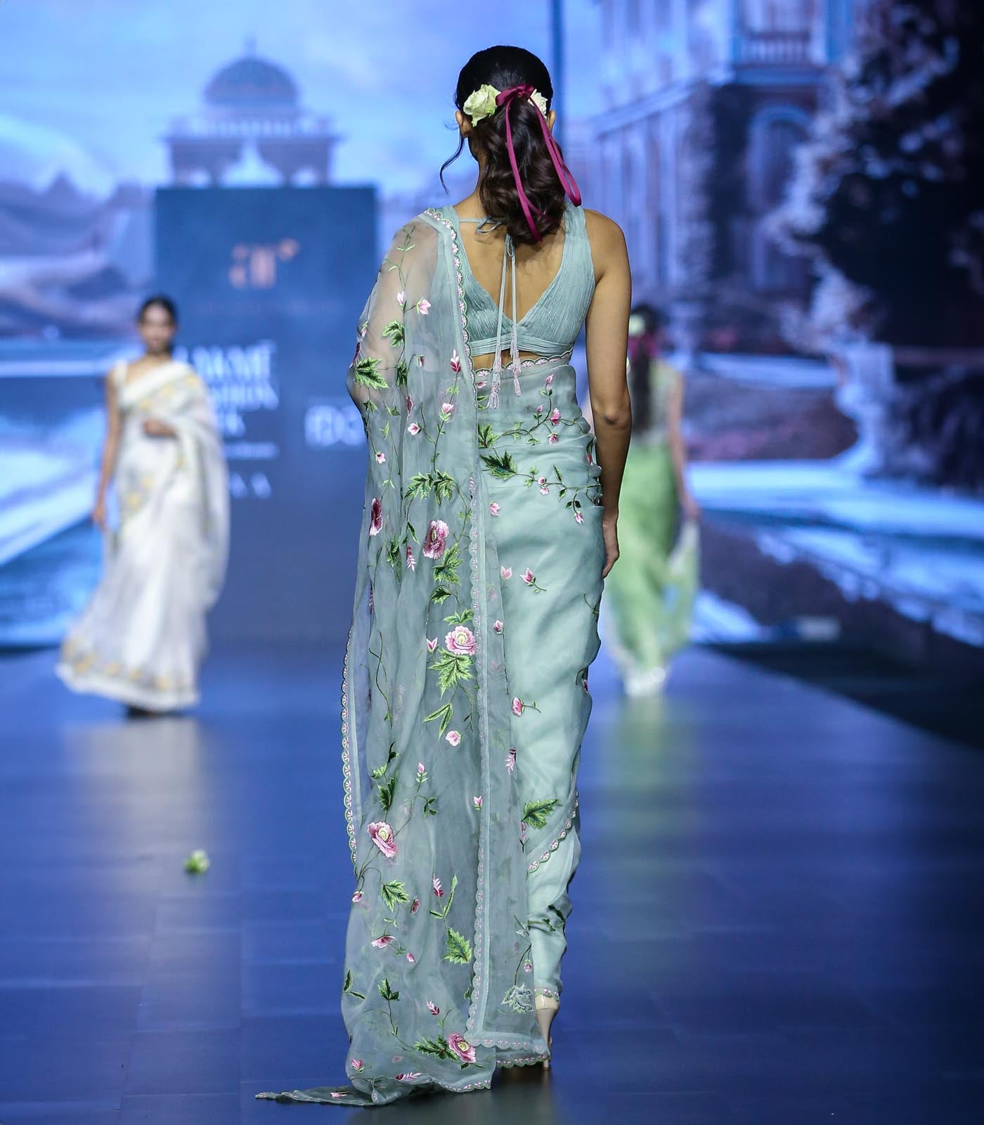 SEA BLUE ORGANZA MULTITHREAD "GULBAHAR" SAREE AND BLOUSE