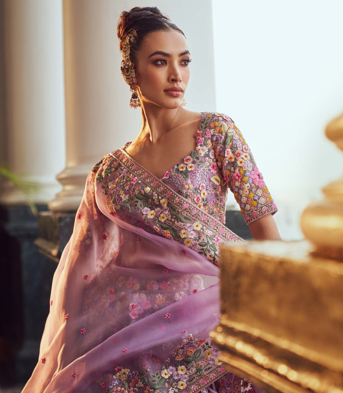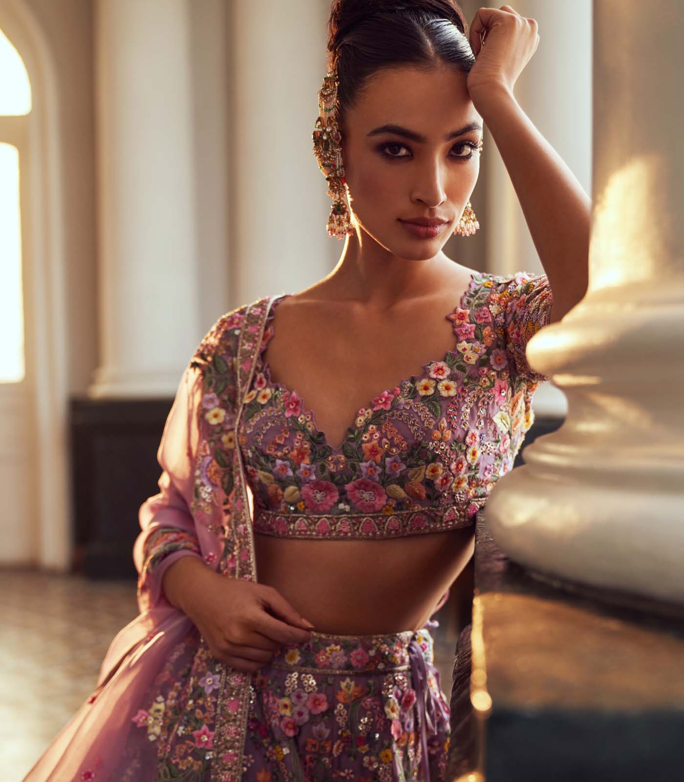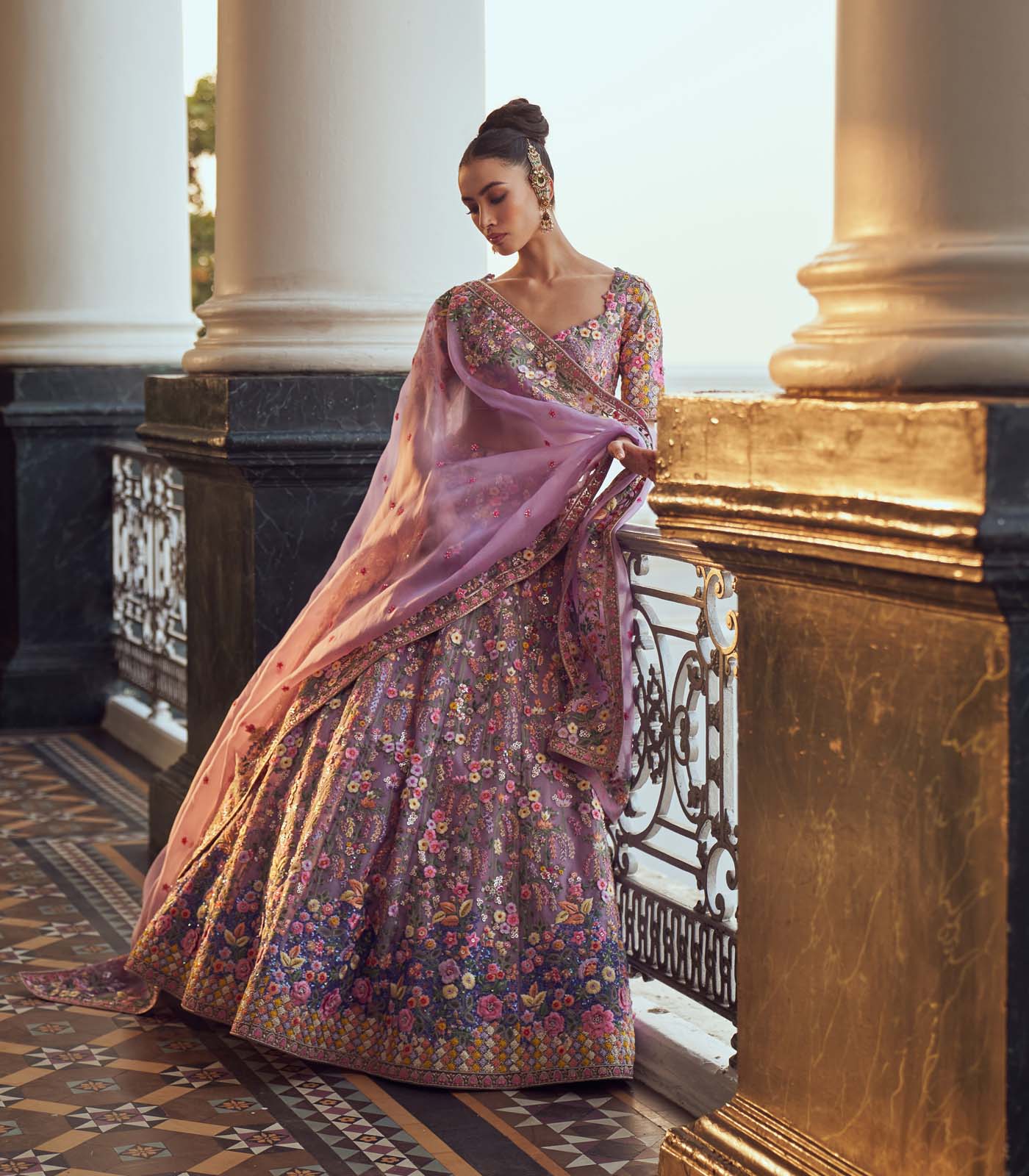 LAVENDER MULTI THREAD 3D ORGANZA "IRIS" LEHENGA SET