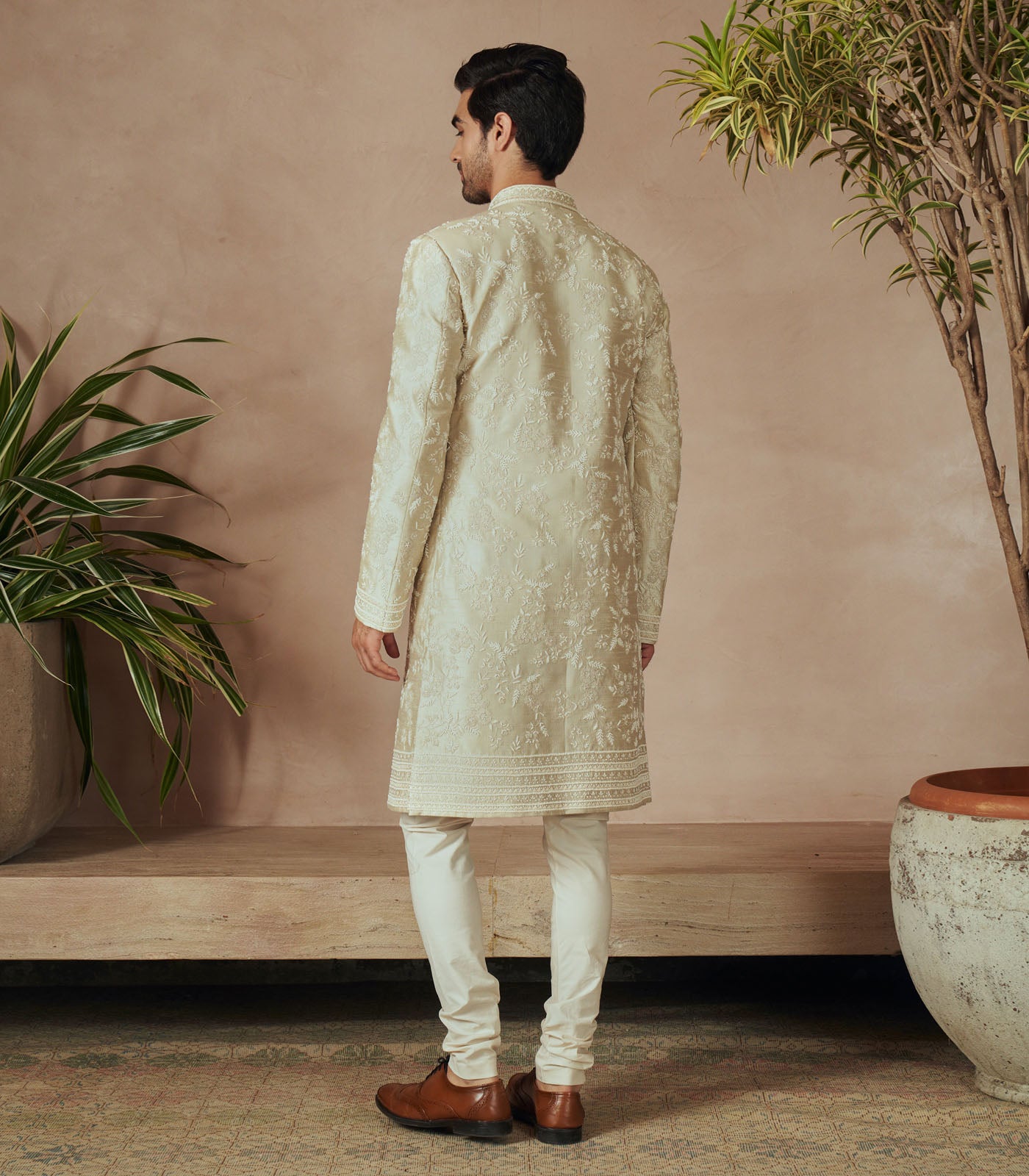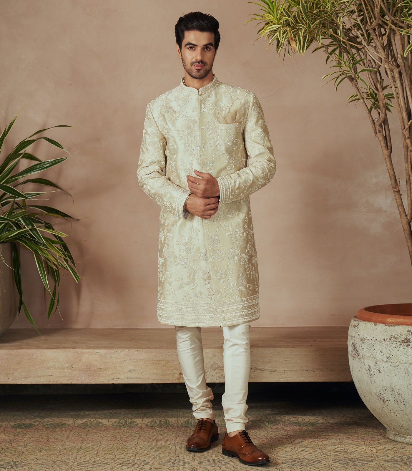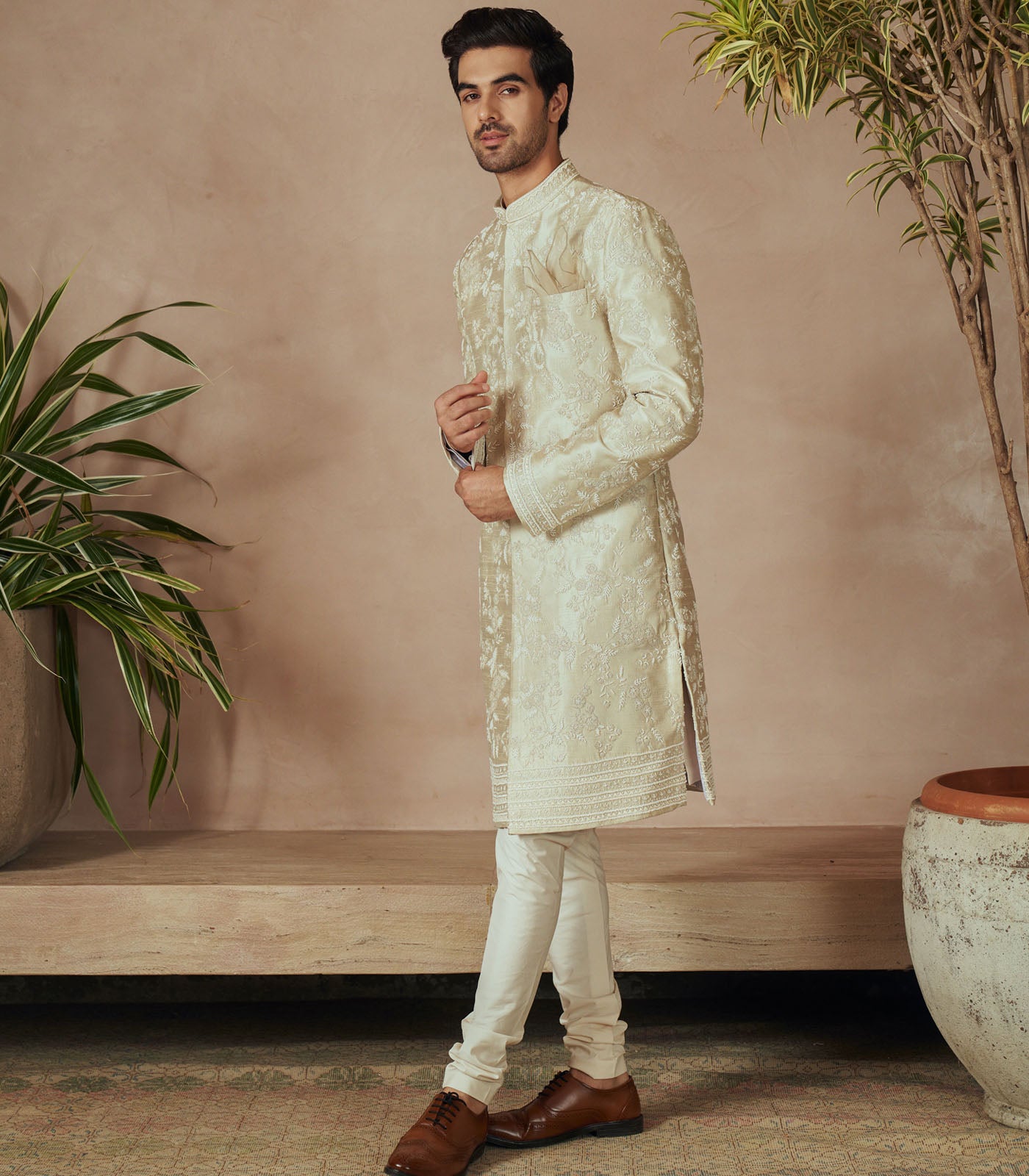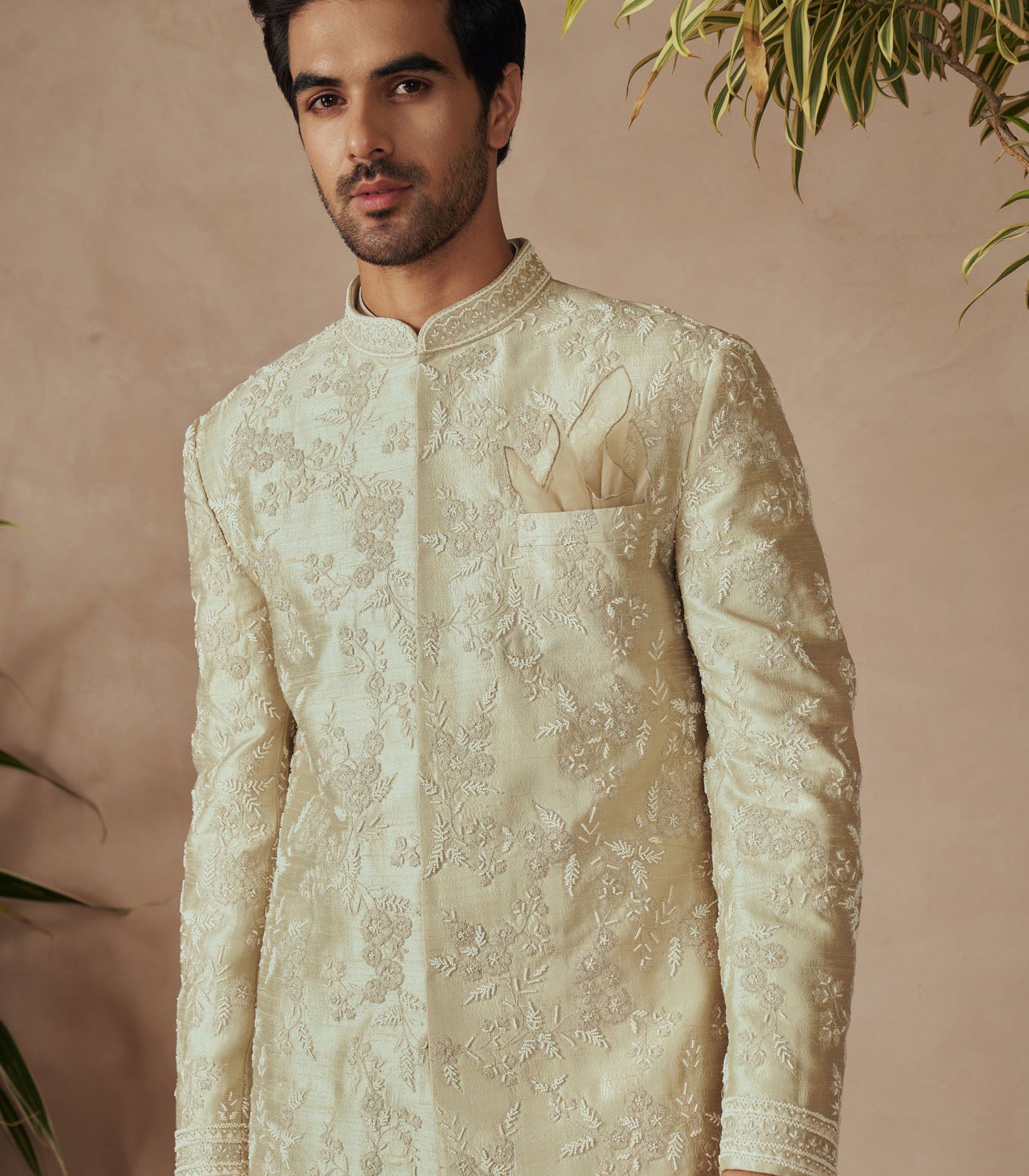 COMPONENTS: 4 (SHERWANI + KURTA + TROUSER + POCKET SQUARE)
