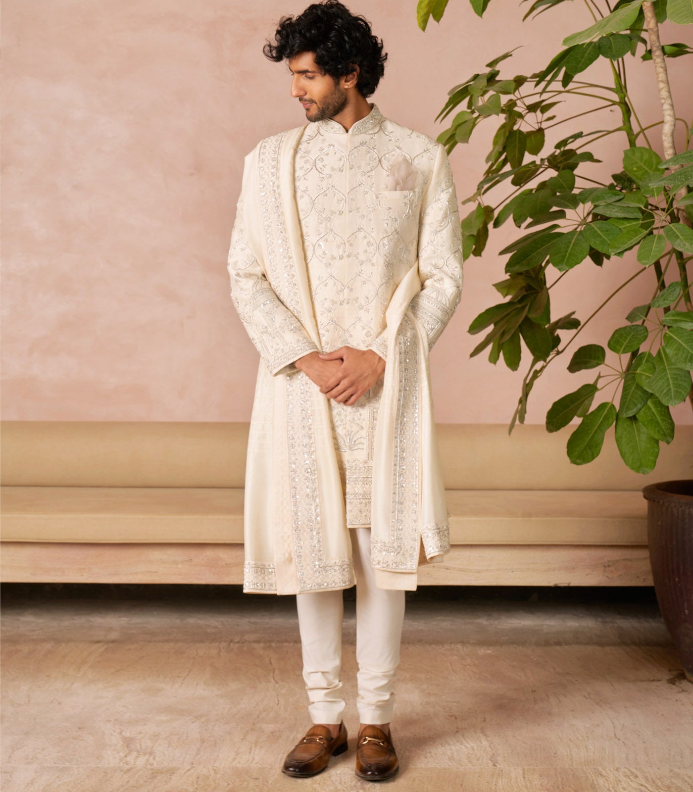 MEHRAAB GEOMETRIC CREEPER SHERWANI SET