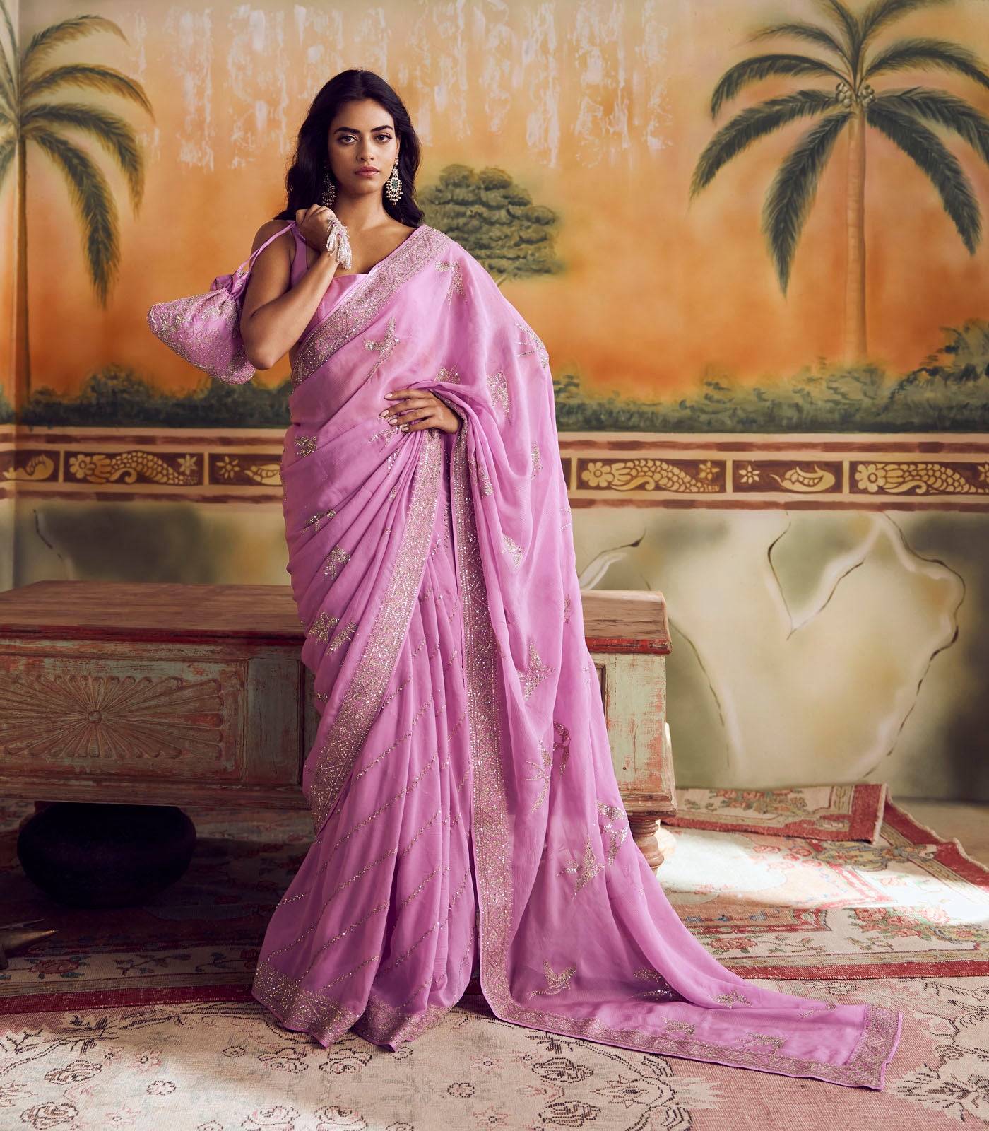 Material: Chiffon saree & Dupion silk blouse fabric only