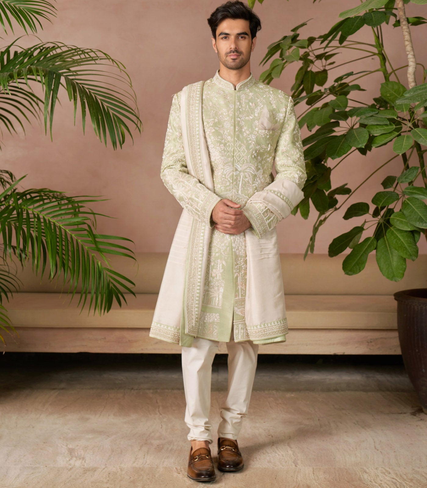 COMPONENTS: 4 (KURTA + TROUSER + SHERWANI + DUPATTA)