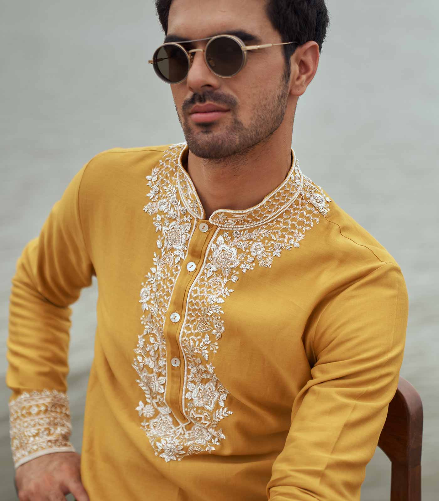 MUSTARD EMB KURTA SET