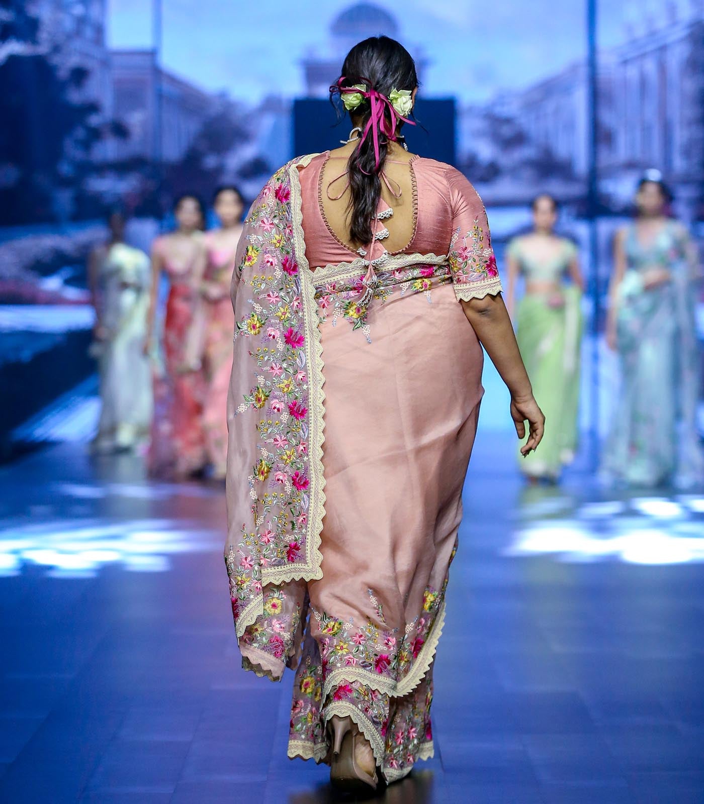 PEACH ORGANZA MULTITHREAD AD DORI EMB "NADIAH" SAREE AND BLOUSE