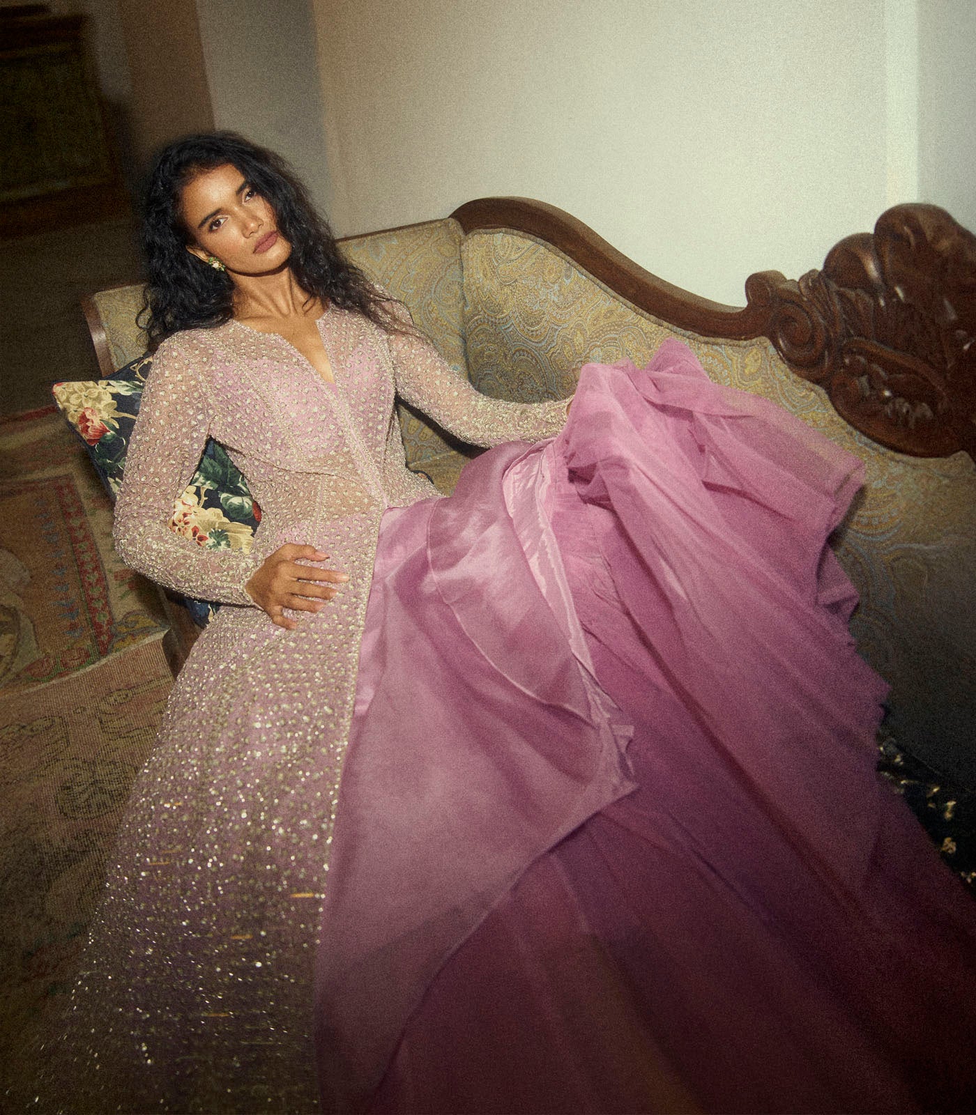 Material: Jacket - Net | Crop Top - Raw Silk | Skirt - Organza