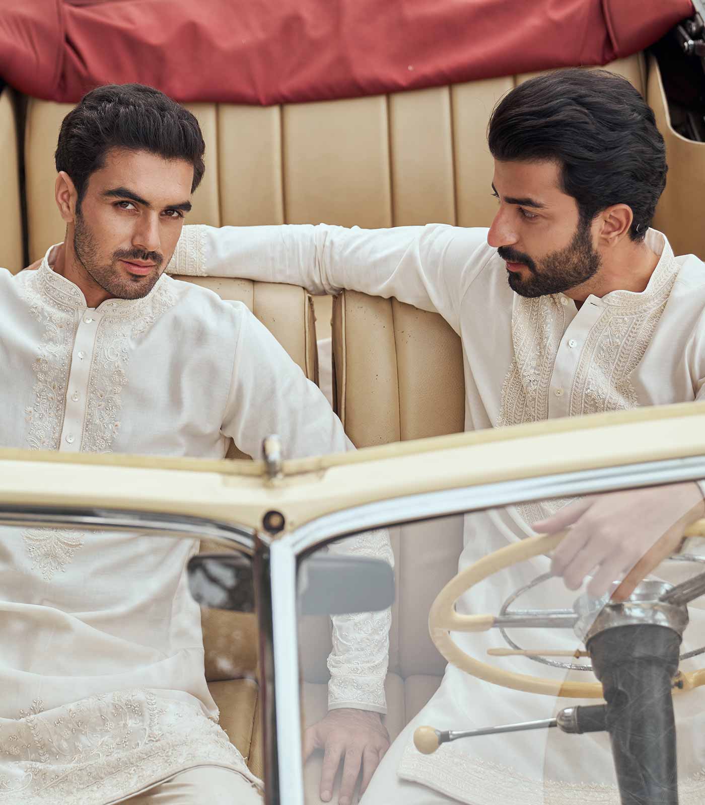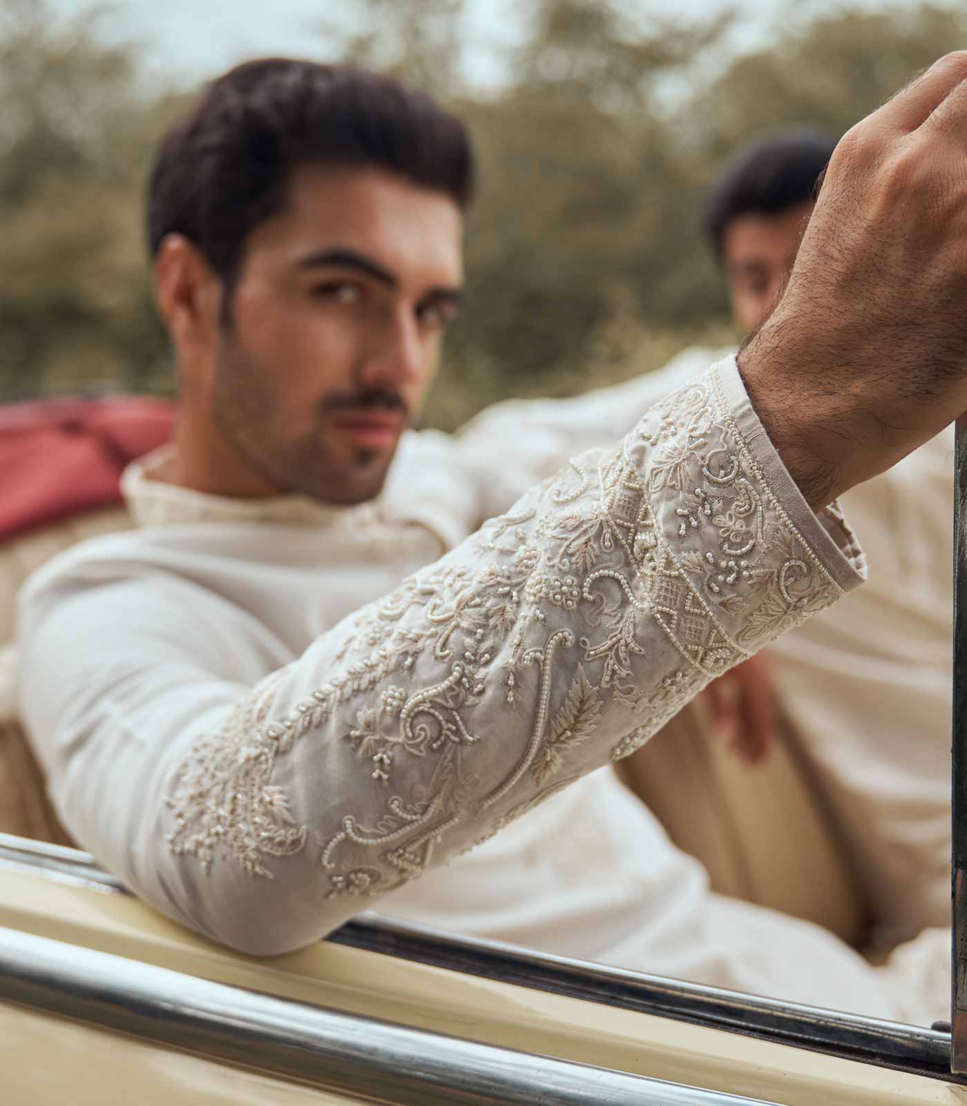 IVORY CHANDERI PALM TREE TONAL KURTA SET