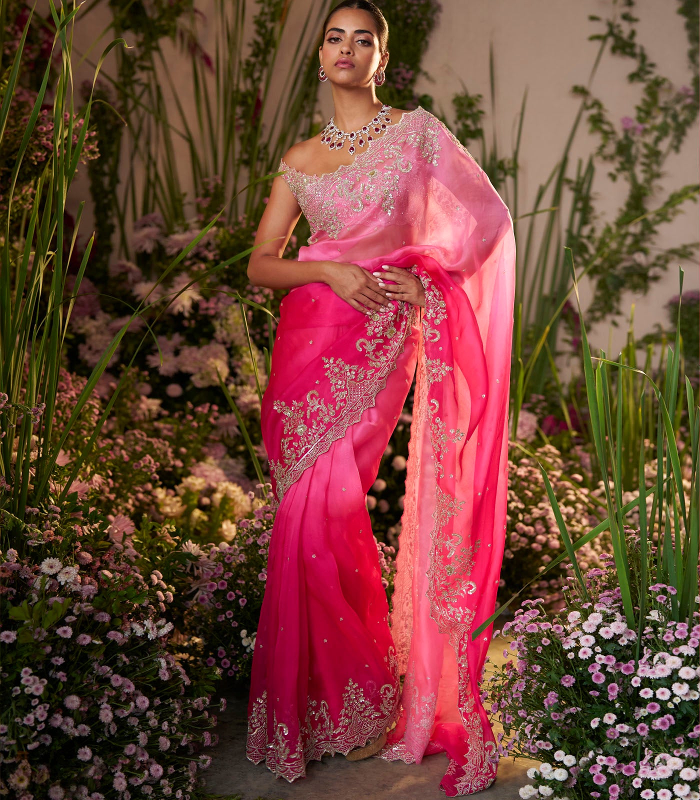 Pink And Hot Pink Ombre Akhila Saree Set