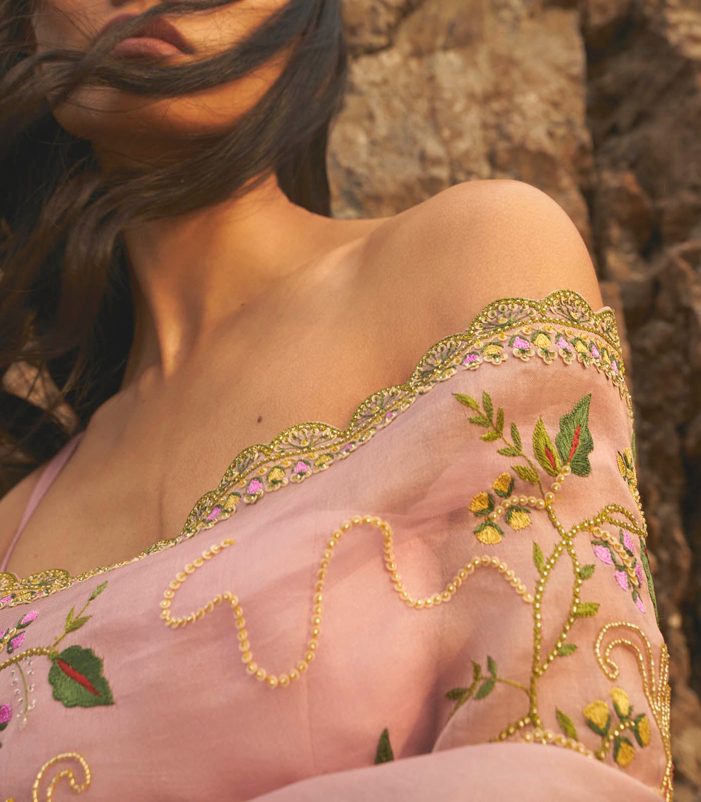 PINK ORGANZA SAREE SET