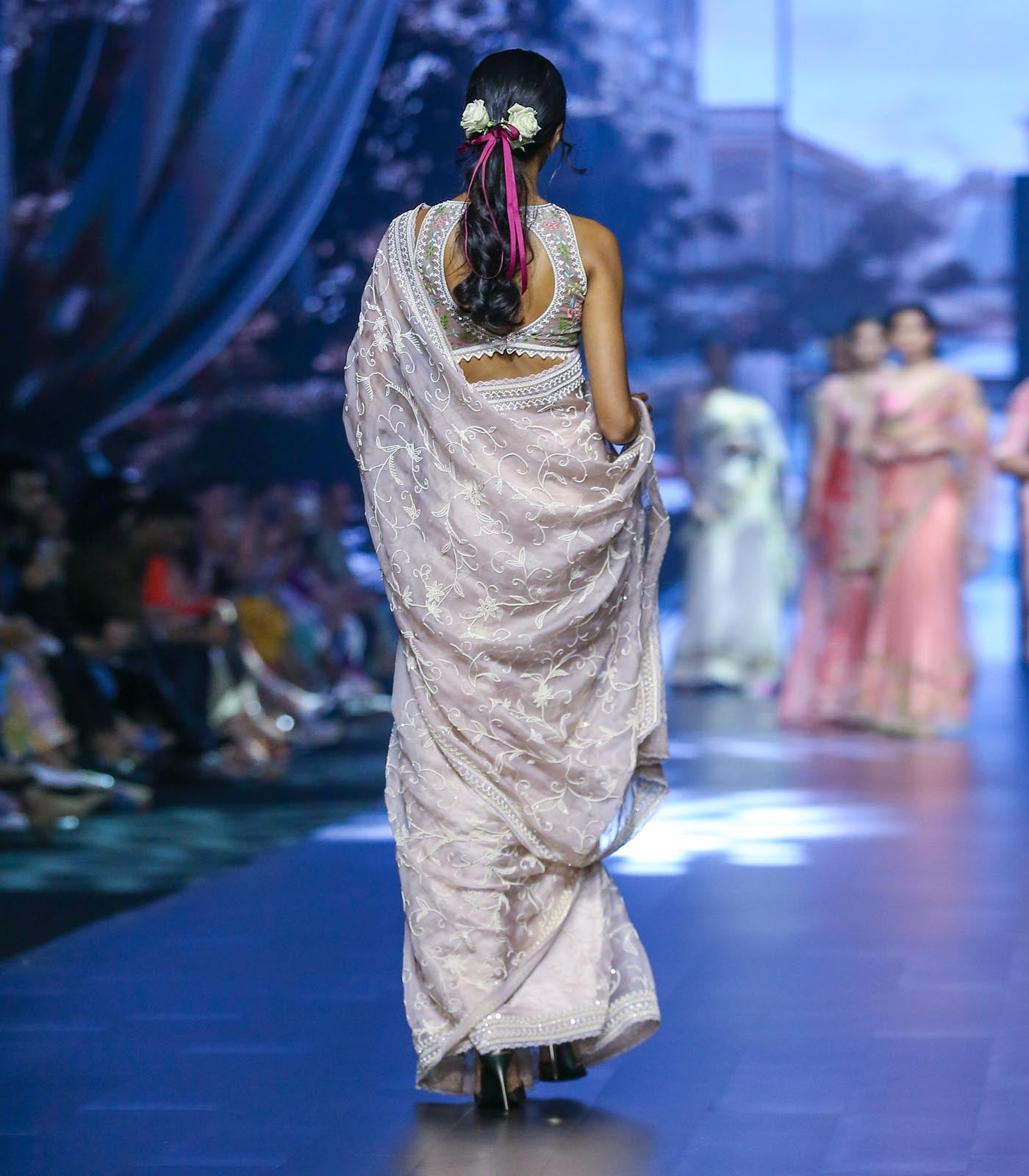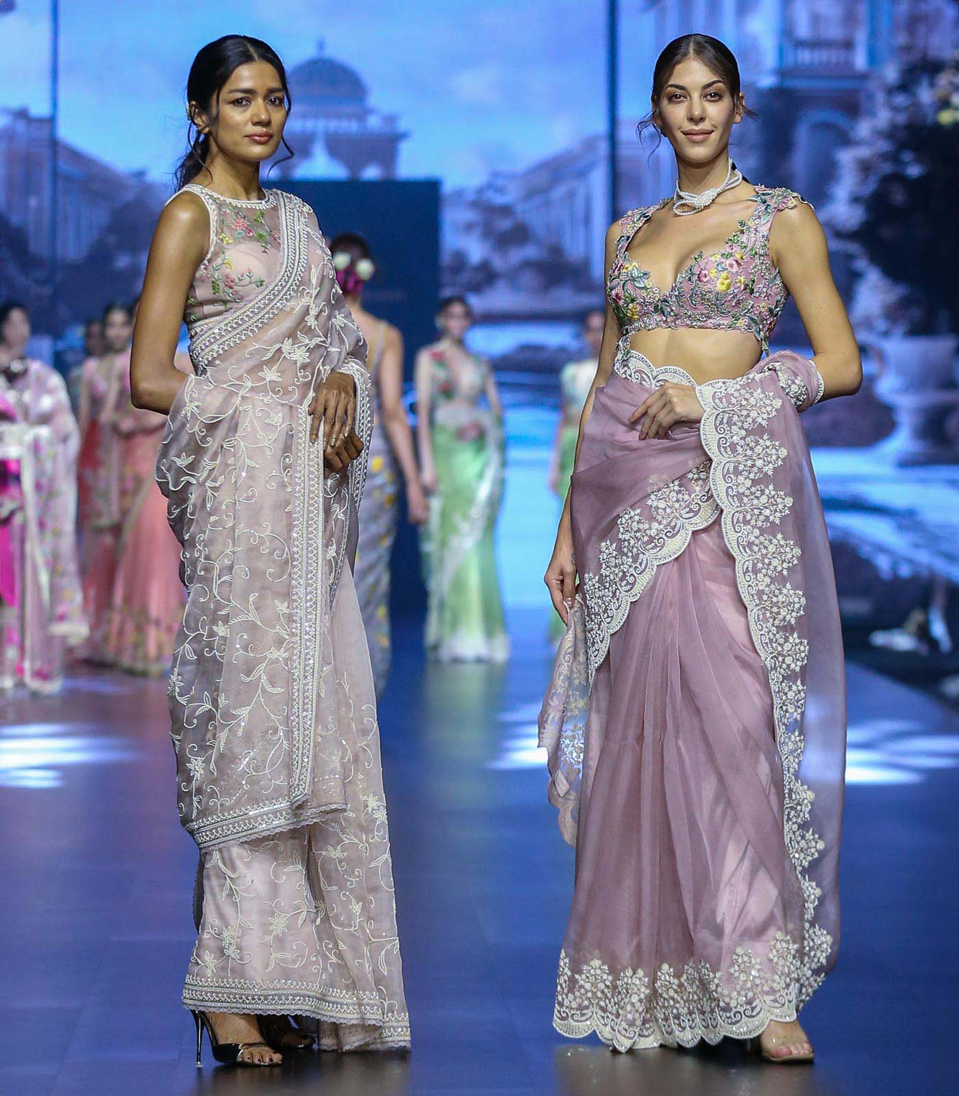 POWDER PINK ORGANZA ALLOVER PEARL CREEPER "ROOHANIYAT" SAREE SET
