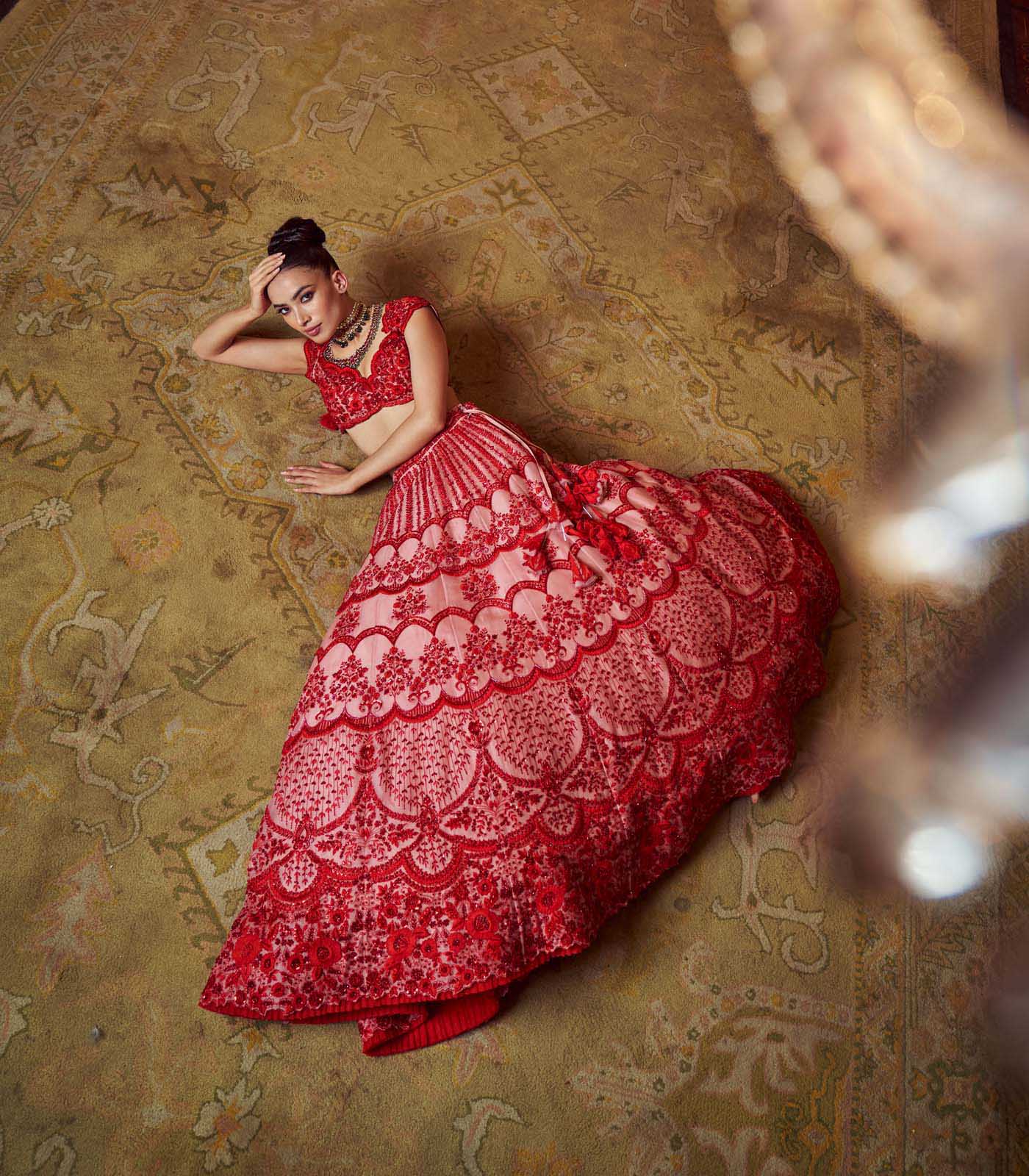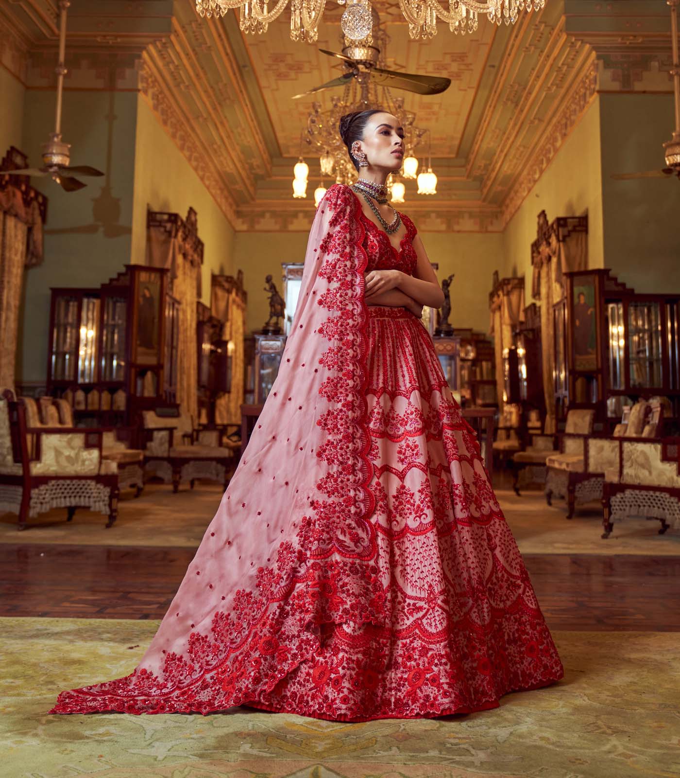 PINK AND RED HILIGHTED EMBROIDERY "SCARLET" LEHENGA SET