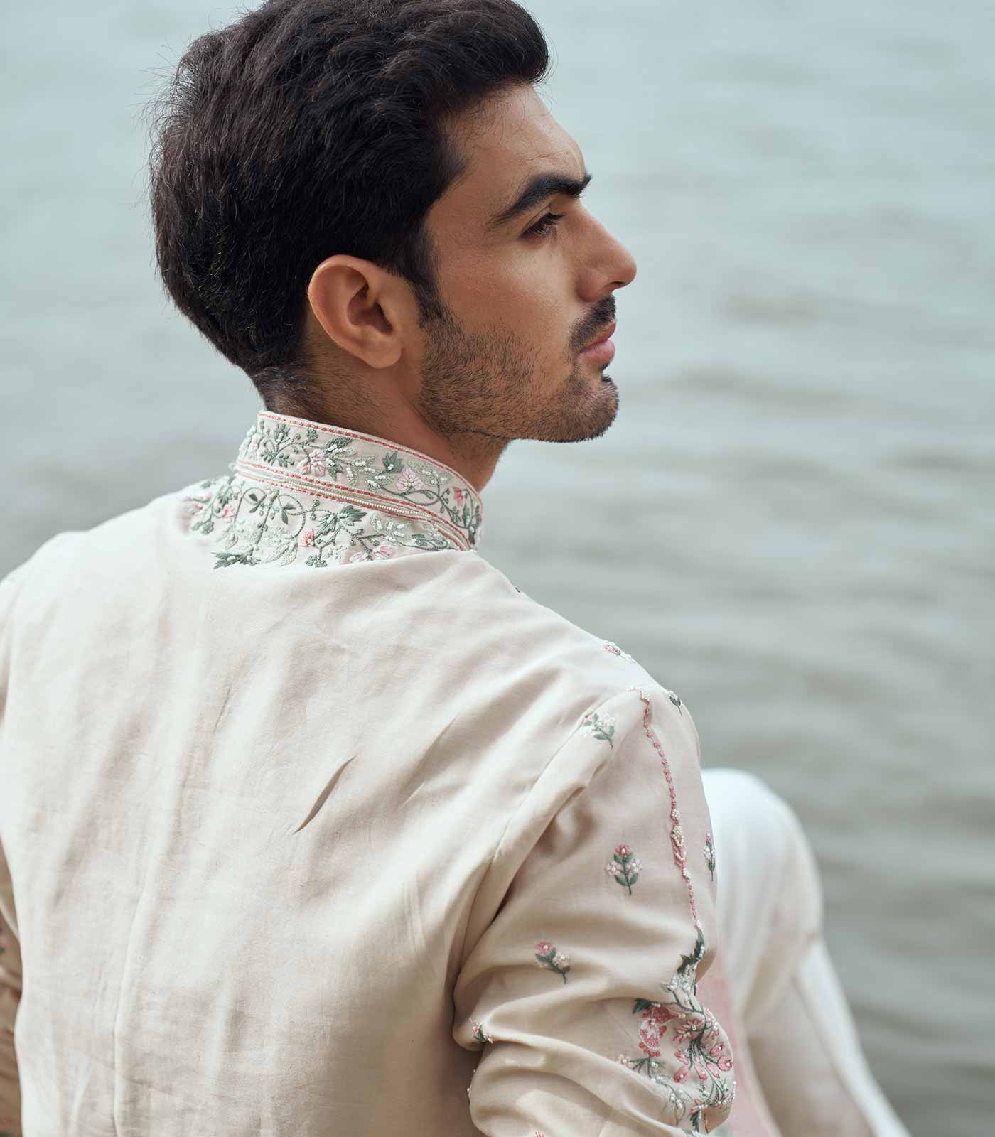 CHAMPAGNE CHANDERI TUTTY FRUITY KURTA SET