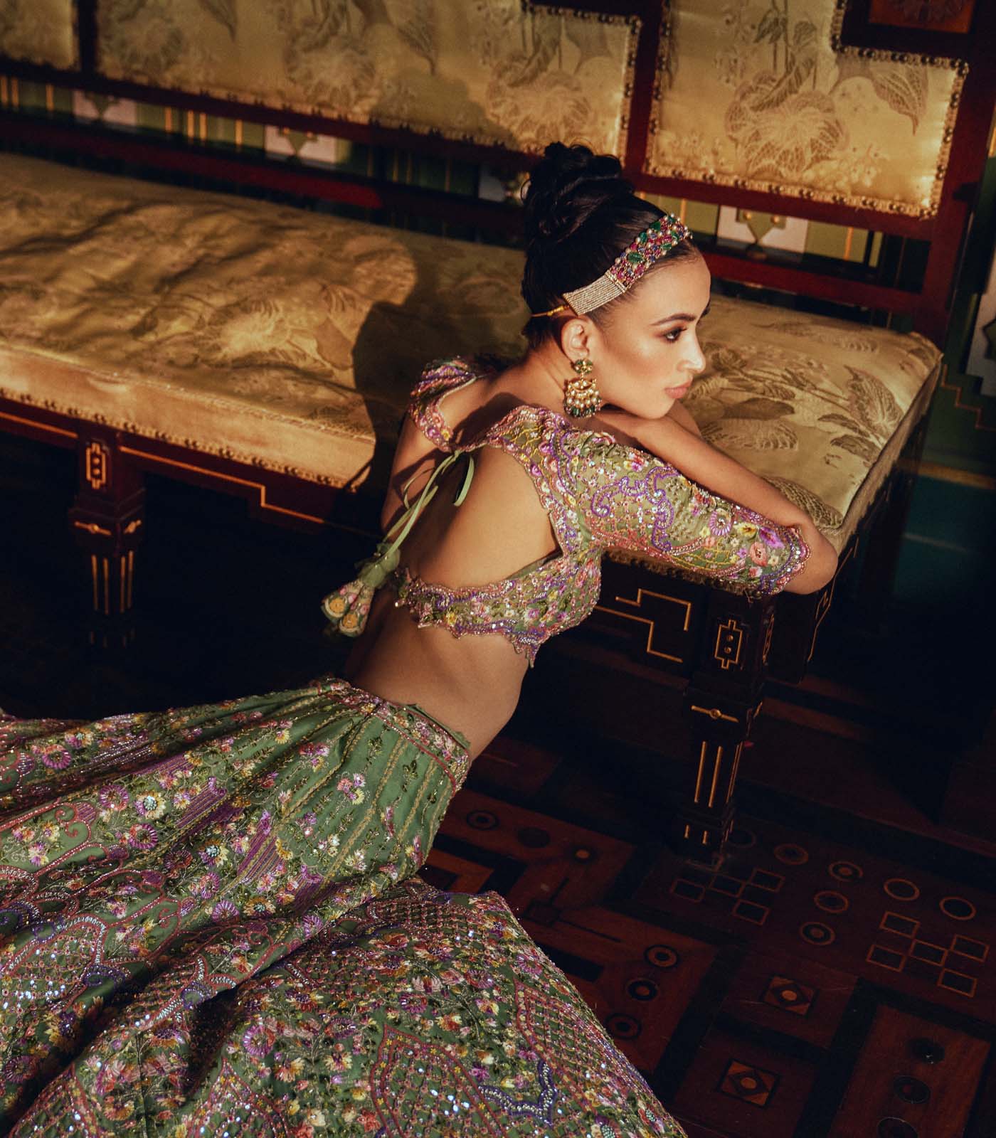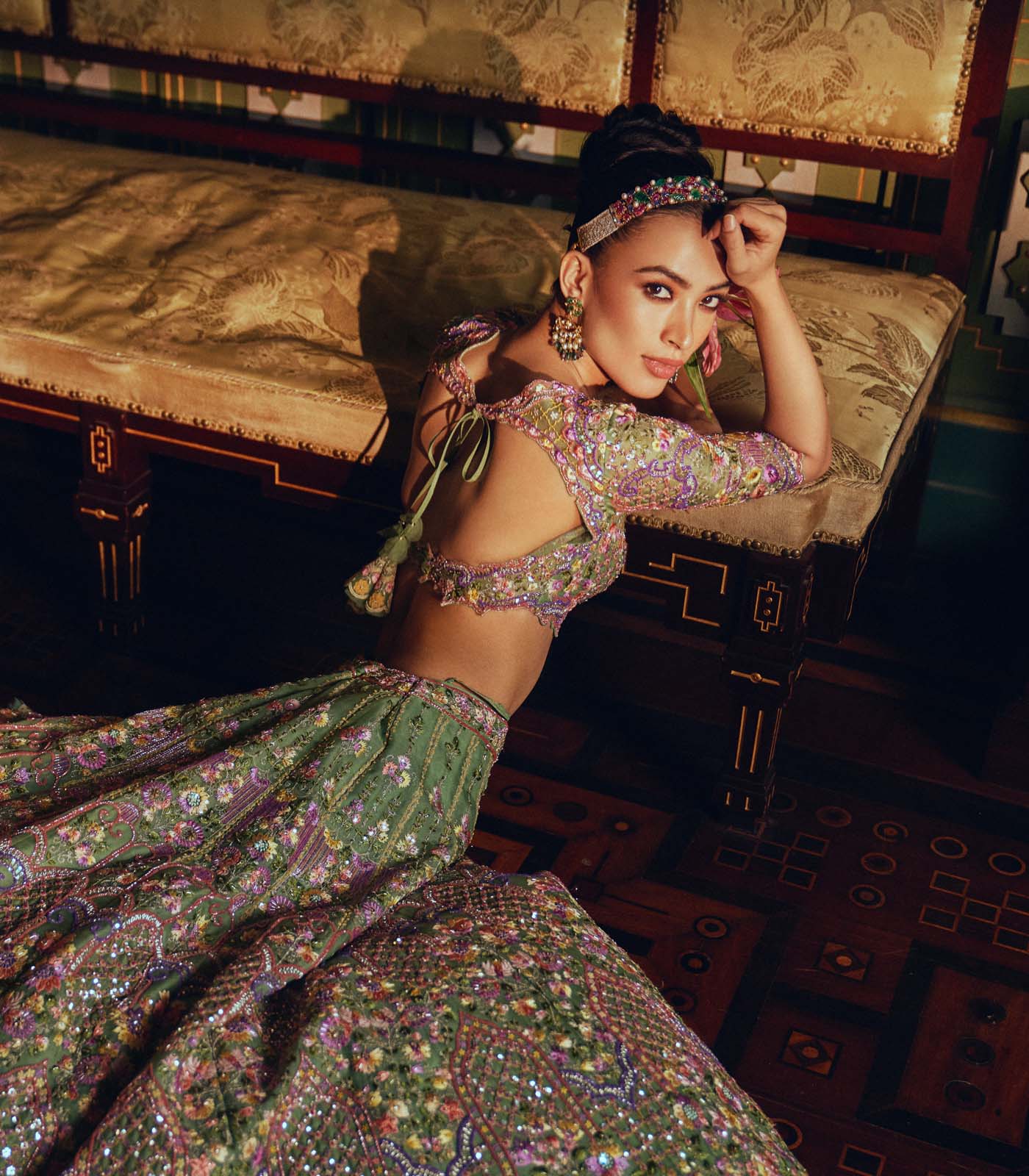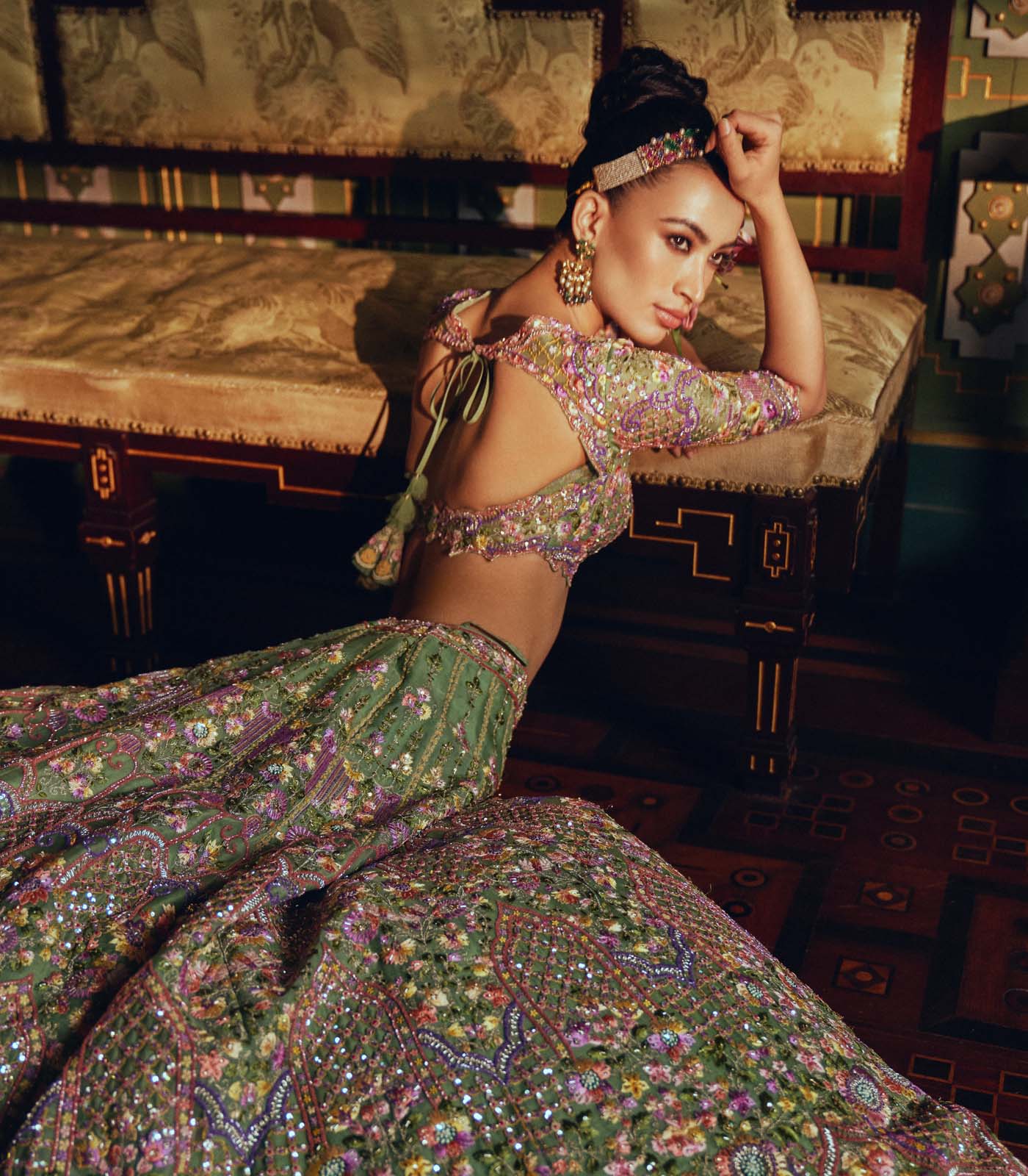 MINT GREEN ORGANZA MULTITHREAD EMB CUTDANA HILITED "ZINNIA" LEHENGA SET
